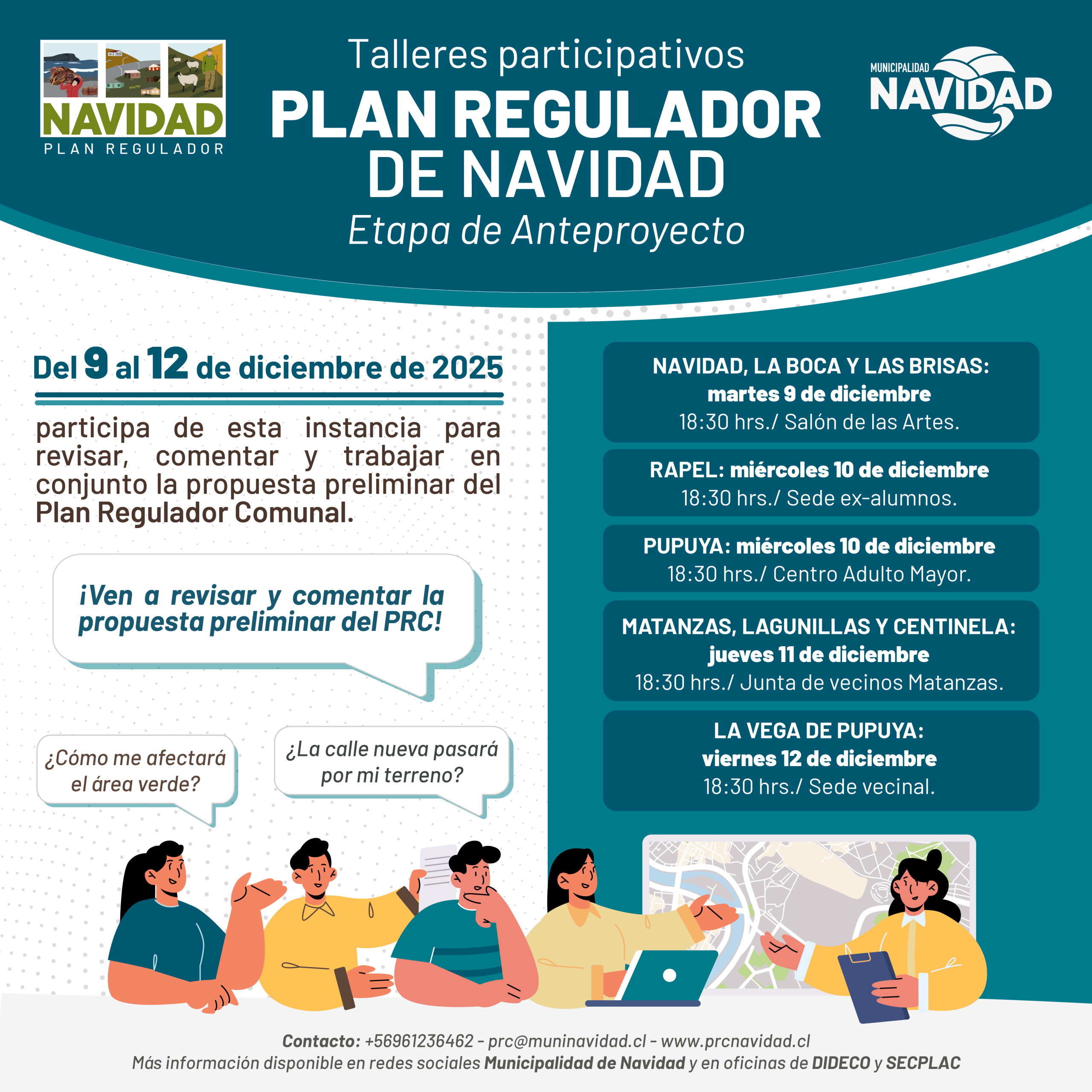 Les invitamos a seguir siendo parte del estudio de Plan Regulador Comunal de Navidad y a mantenerse atent@s a nuestros canales de comunicación, donde avisaremos futuras instancias participativas.